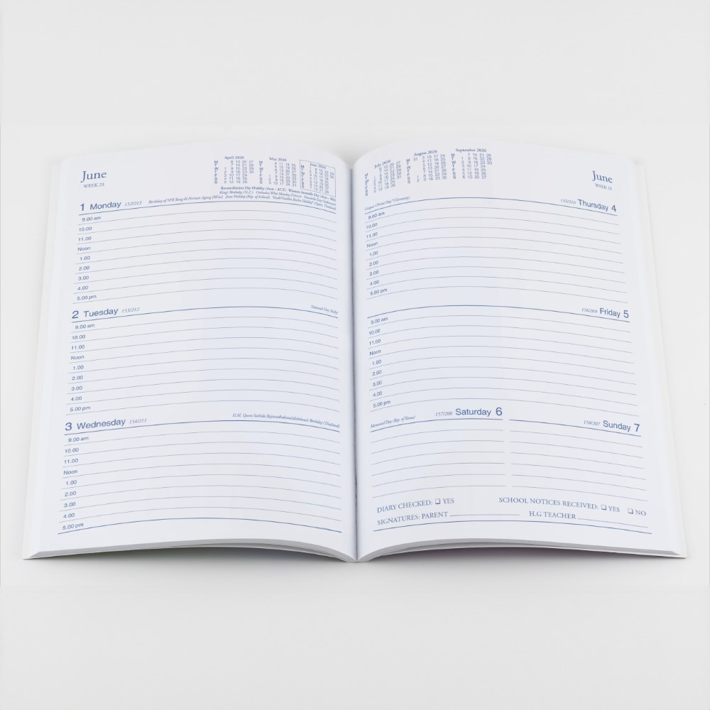 The range is available as an A5 Week to View Student Diary (spiral or perfect bound) and practical A4 and A5 wire weekly notebook.