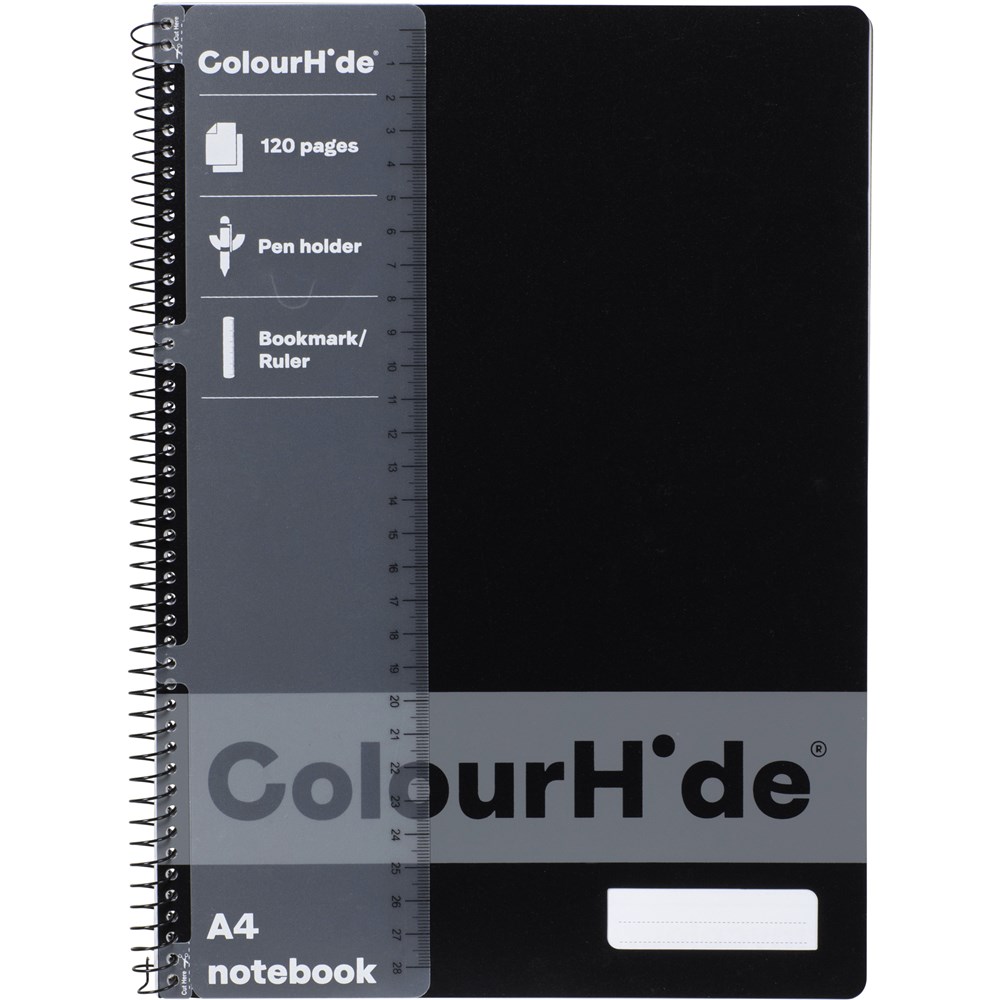 ColourHide Spiral Notebook A4 Side Bound 120 Page Black