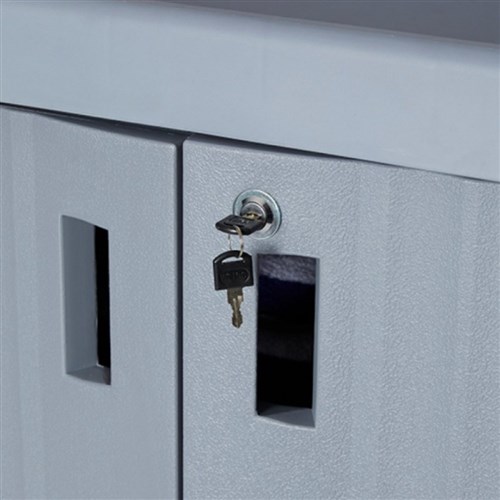 Hard cover lockable doors and 2 x 100L bags with metal eyelets and side zip access