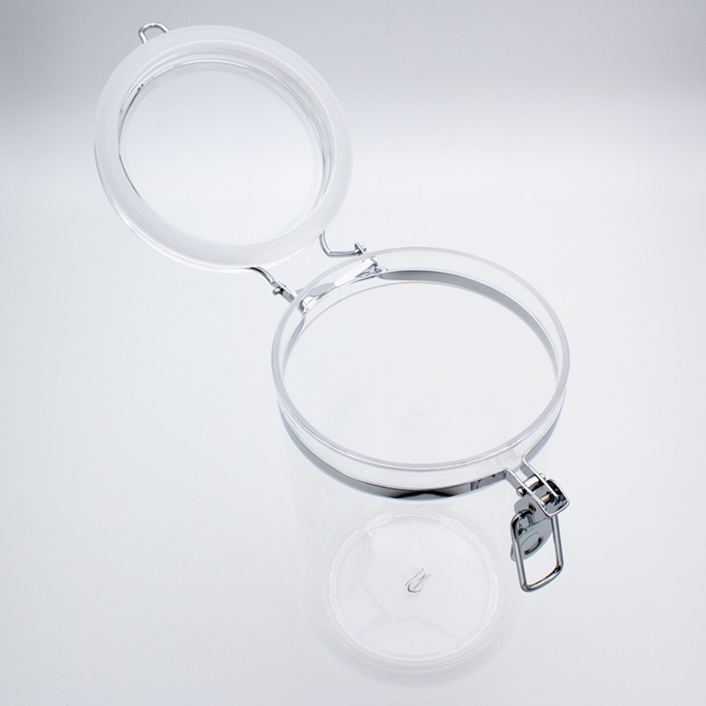 Air-tight lid with chrome clip.