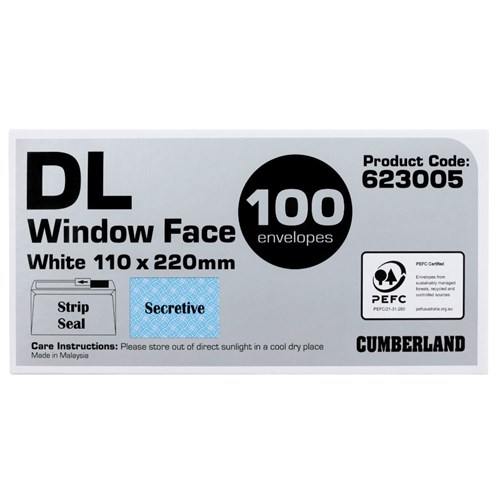 Cumberland Envelopes 110 X 220mm Strip Seal And Address Window White Box Of 100