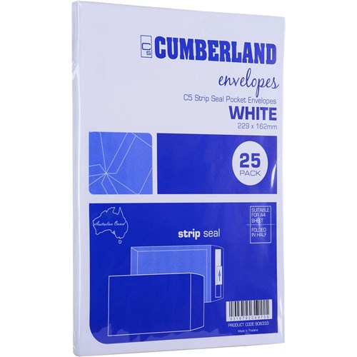 Cumberland Plain Envelope Pocket C5 162 x 229mm Strip Seal White Pack Of 25