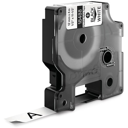 Dymo 18488 Rhino Industrial Labels 12mmx3.5m Nylon Black on White