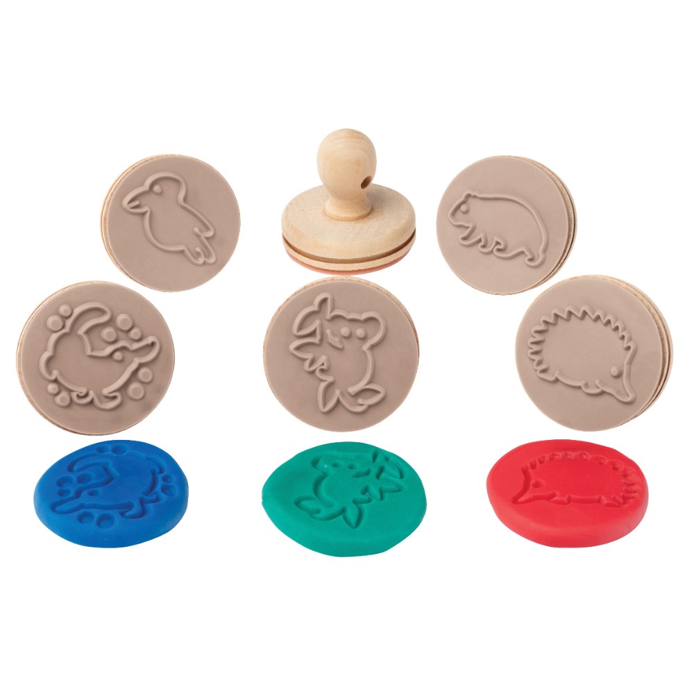 Educational Colours Wooden Dough Stamps Australian Animals Box Of 6