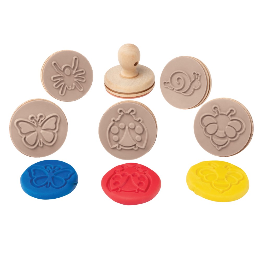 Educational Colours Wooden Dough Stamps Garden Bugs Box Of 6