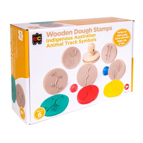 Educational Colours Wooden Dough Stamps Indigenous Animal Track Box Of 6