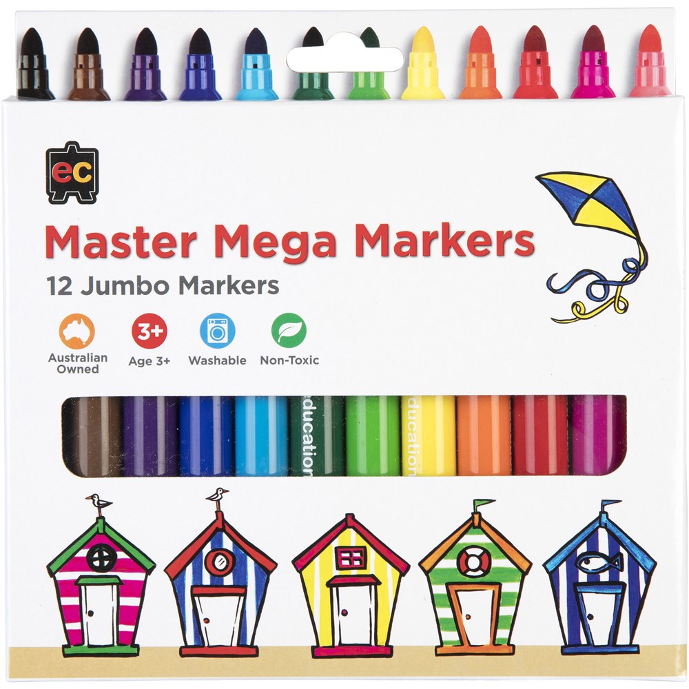 EC Master Markers are perfect for your artists with jumbo barrels, safe non-toxic, water based, childsafe ventilation caps.