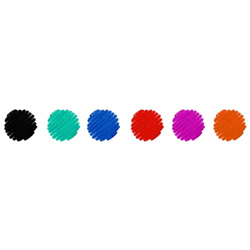 6 bright, vibrant colours in Red, Pink, Orange, Green, Blue and Black