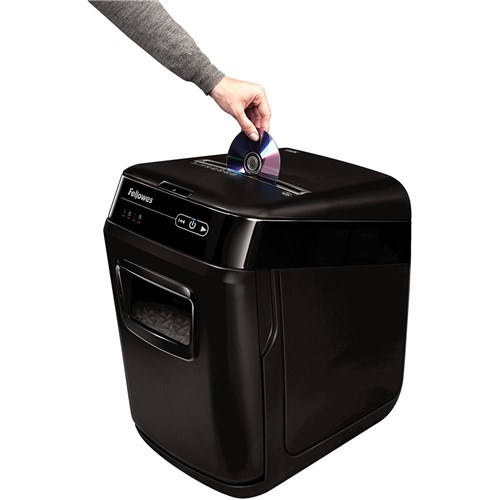 Auto reverse, auto feed, bin full light, Can shred staples, credit cards, paper clips CD's/DVD's.