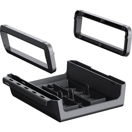 3 height settings for ergonomic viewing comfort. Height Range: 82mm, 116mm and 151mm. Dimensions: 354W x 304D x 82/116/151mmH. Platform size: 319W X 238mmD.