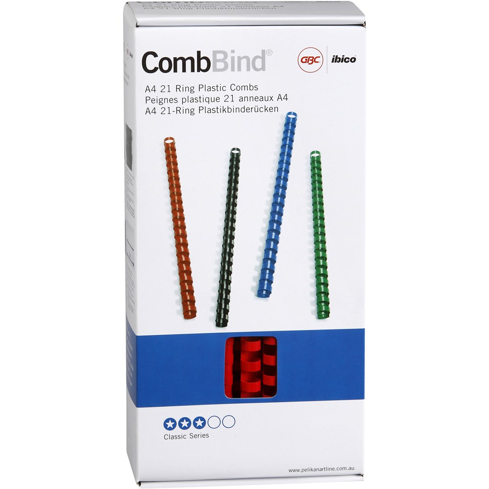 GBC Plastic Binding Comb 12mm 21 Loop 90 Sheets Capacity Red Pack Of 100