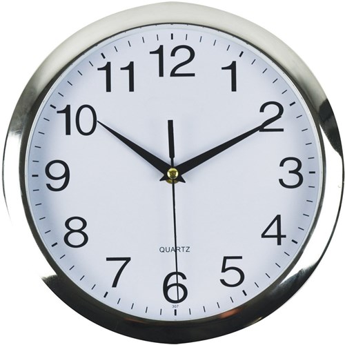 Italplast Wall Clock 26cm Round With Large Numbers Chrome Frame White Face