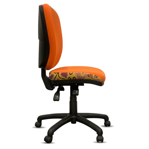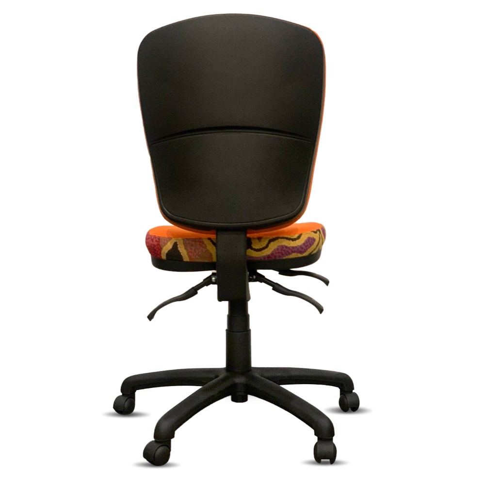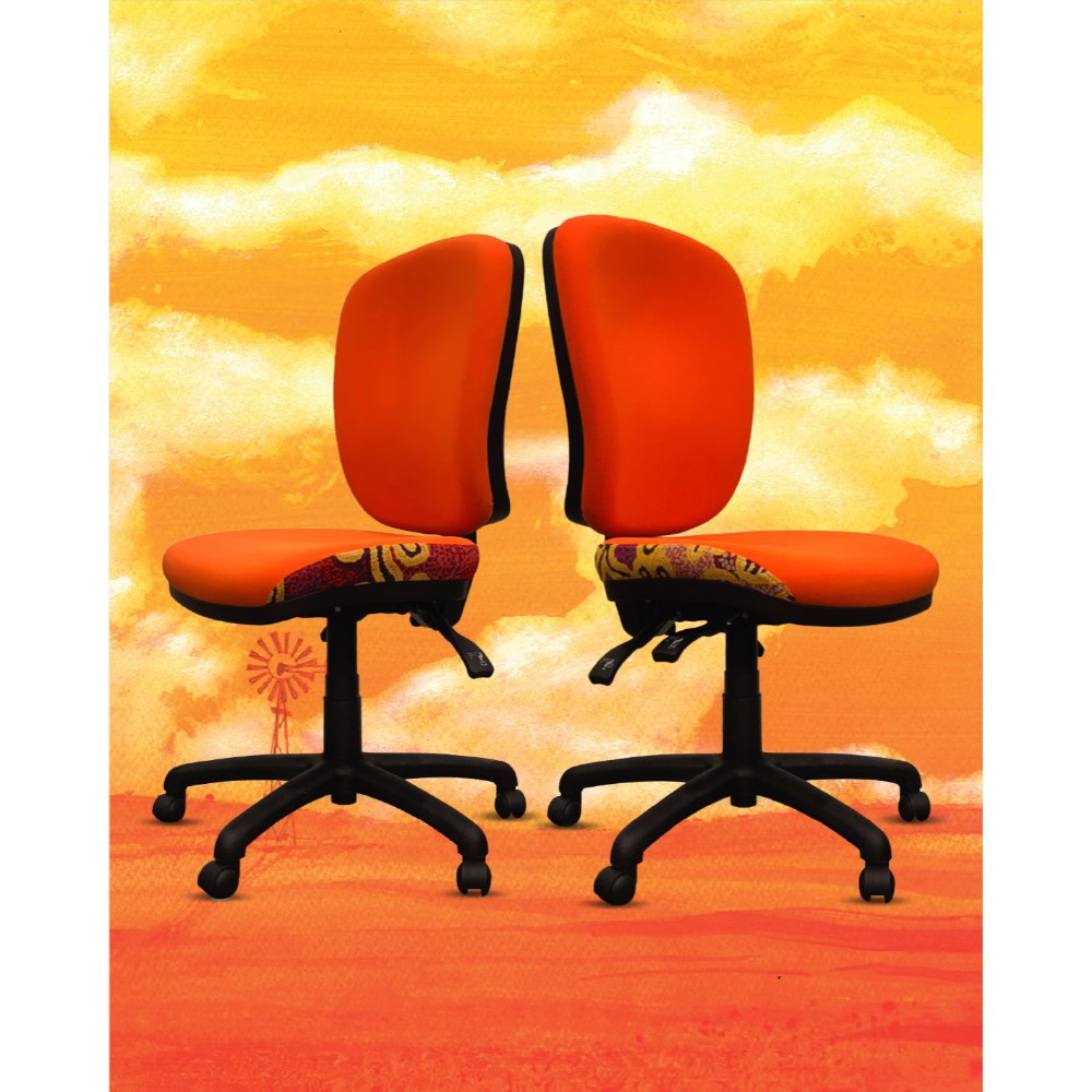 A unique commercial fabrics designed by Paddy Stewart (Indigenous artist) combined with K2 Golden Orange Fabric to upholster the chair.