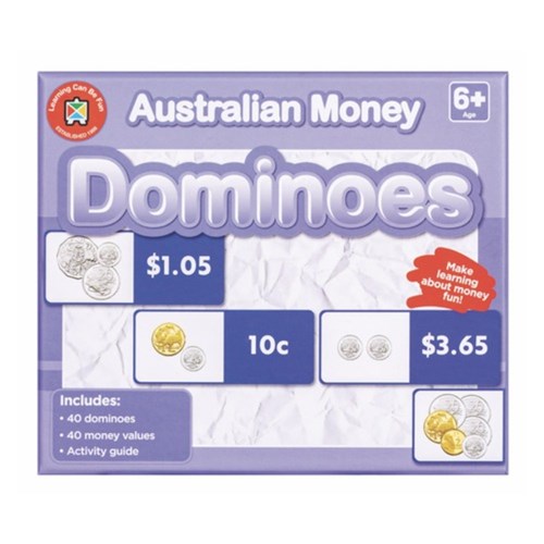 Includes: 40 dominoes, 40 money values and activity guide.