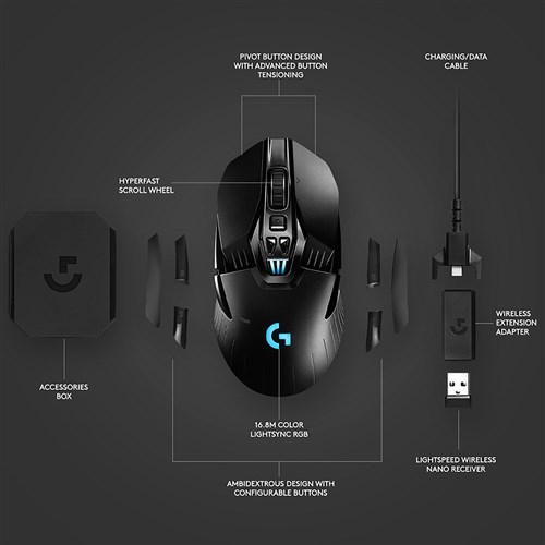 Logitech G903 Lightspeed Wireless Gaming Mouse with Hero 16K Sensor Black