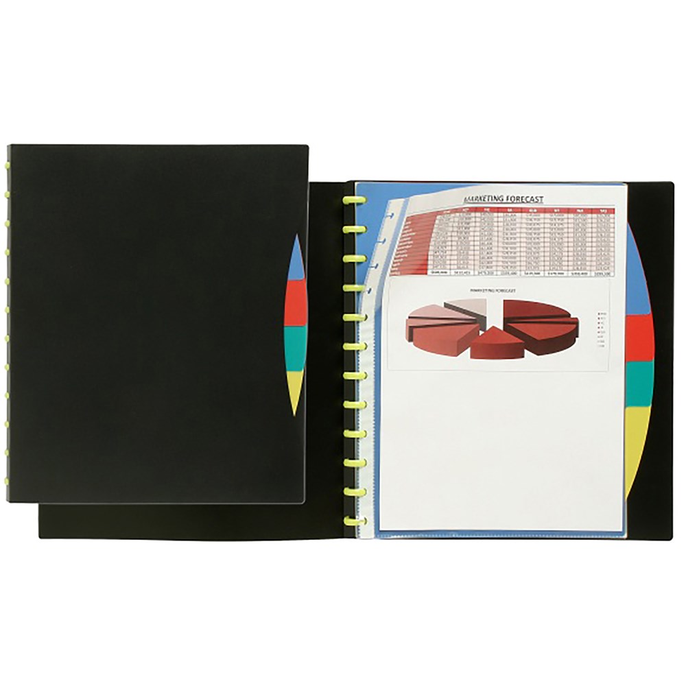Marbig Kwik Zip Display Book A4 Refillable 20 Pocket With 4 Colour Dividers Black Cover