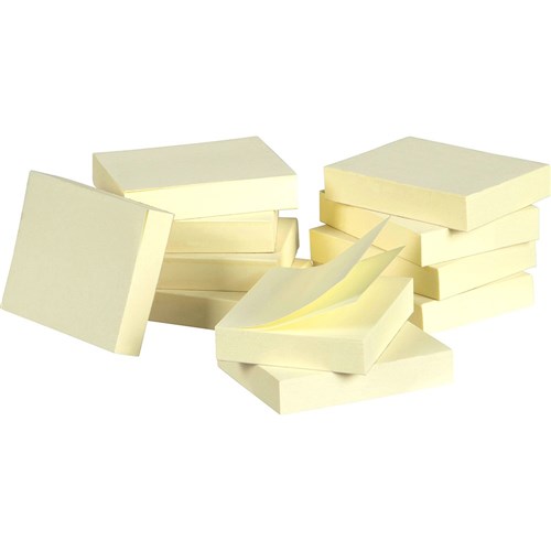 Marbig Repositionable Notes 75 x 75mm Yellow 100 Sheet Pad Pack Of 12