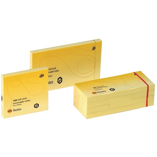 Marbig Repositionable Notes 75 x 75mm Yellow 100 Sheet Pad Pack Of 12