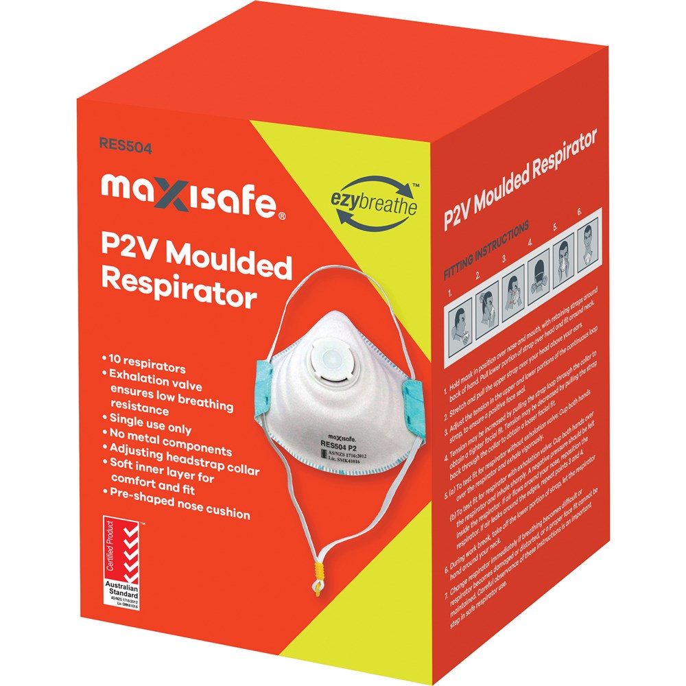 Maxisafe P2V Moulded Respirator Disposable With Valve White Pack Of 10