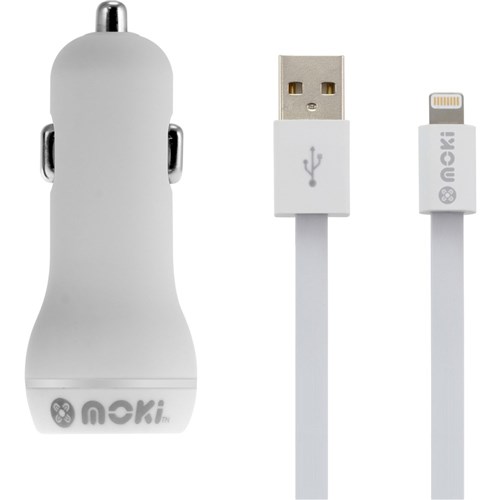 Moki Lightning To USB Cable + Car Charger White