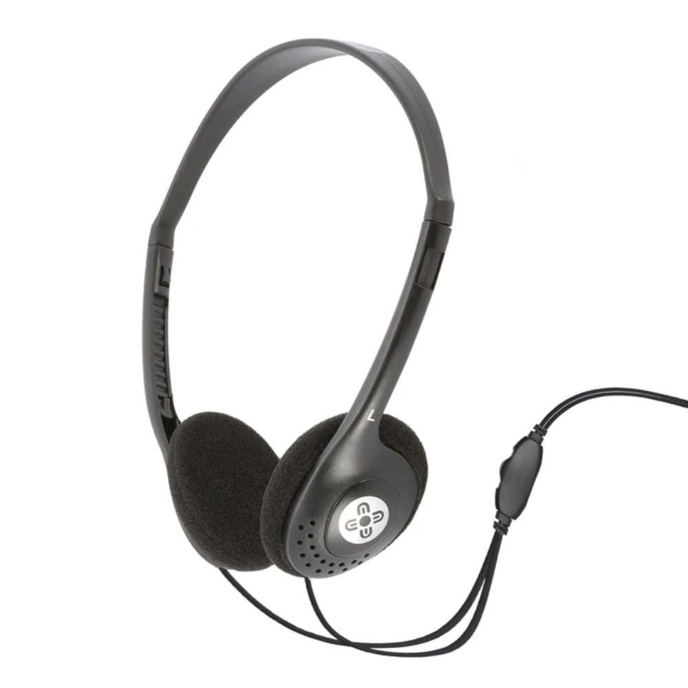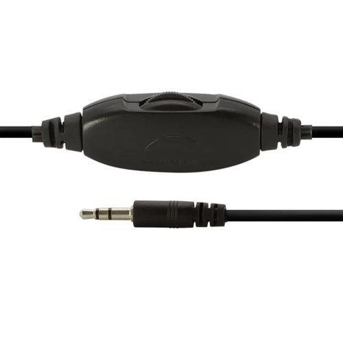 Slim designed headphone with in-line volumen control located conveniently on the audio cable.