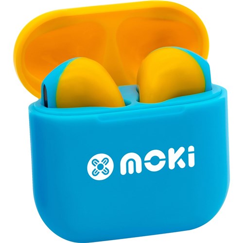Moki MokiPods Volume Limited True Wireless Stereo Kids Mini Earphones Blue and Yellow