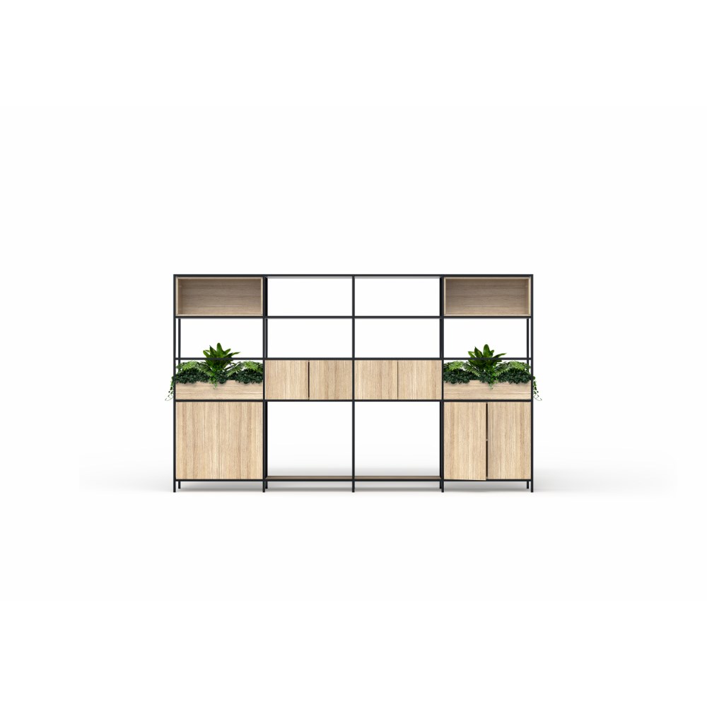 OLG Rhodes Modular Shelving 4 Bay 3360W x 455D x 2400mmH Nordic Maple Black Frame