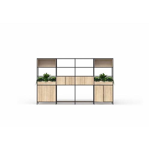 OLG Rhodes Modular Shelving 2 Bay 1680W x 455D x 2000mmH Nordic Maple Black Frame