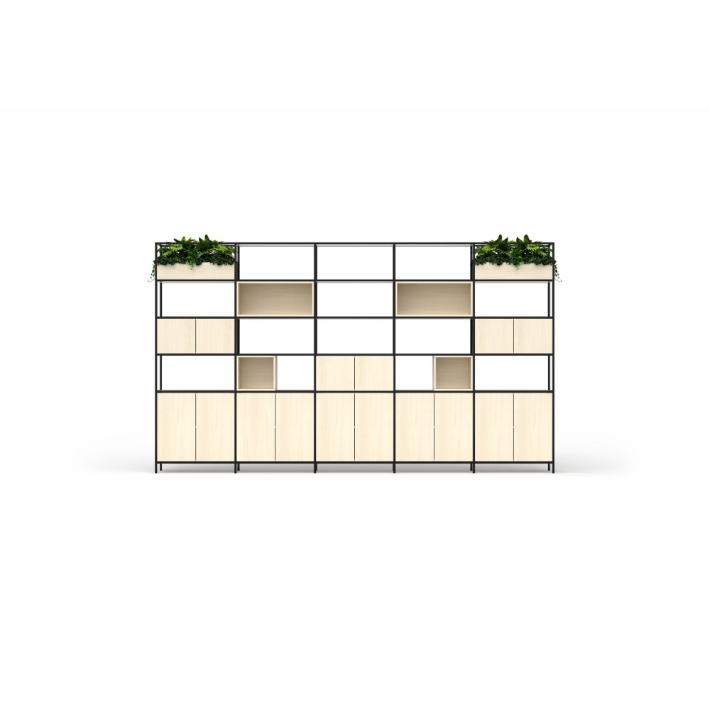 OLG Rhodes Modular Shelving 5 Bay 4200W x 455D x 2400mmH Nordic Maple Black Frame