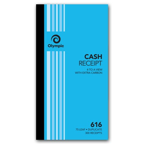 Olympic 616 Cash Receipt Book 4 To A View Carbon Duplicate 254 x 135mm 75 Leaf Blue