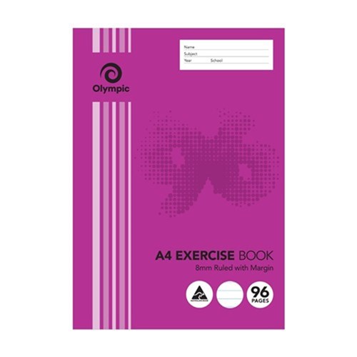 Olympic E896 Exercise Book A4 8mm Ruled With Red Margin 96 Page