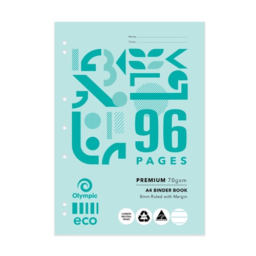 Olympic ECO B812P Binder Book A4 7 Hole Punched 8mm Ruled With Red Margin 128 Page