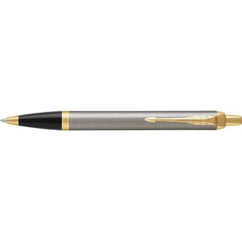 Parker IM Ballpoint Pen Brushed Metal Gold Trim In Giftbox Blue Refill