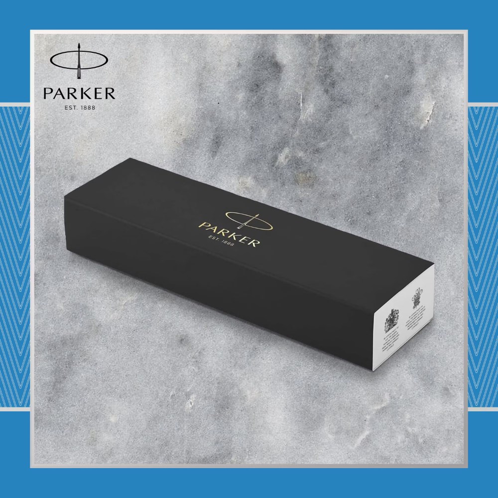 Refreshing blue-grey metallic lacquered body engraved with an iconic chevron pattern is complemented by chrome trims and the signature Parker arrow clip.
