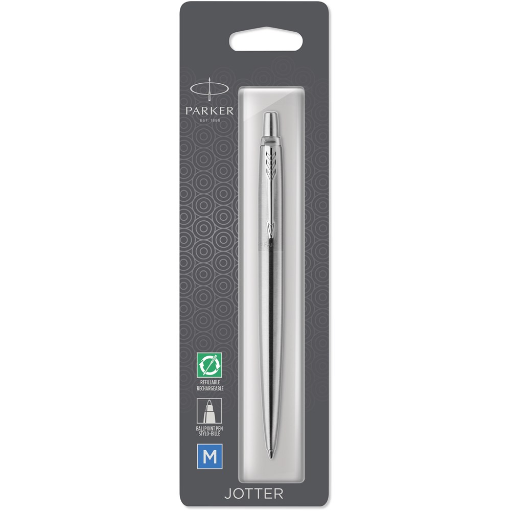 Parker Jotter Ballpoint Pen Chrome Trim Stainless Steel Blue Refill