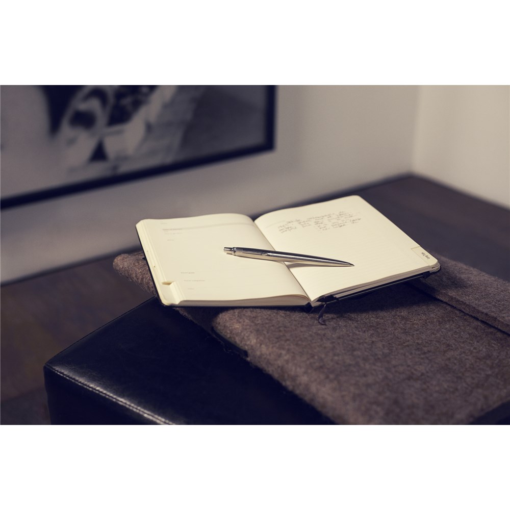Parker Jotter Ballpoint Pen Bond Street Black Chrome Trim Blue Refill