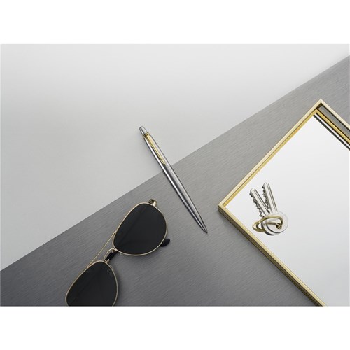 Parker Jotter Ballpoint Pen Chrome Trim Stainless Steel Blue Refill
