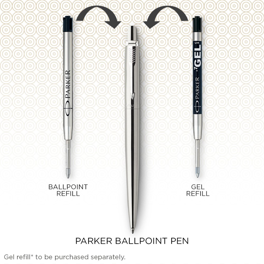 Fitted with Quinkflow ballpoint refill for optimal ink flow and a smooth writing experience. Blue ink, medium tip. Also accepts Parker gel refills.