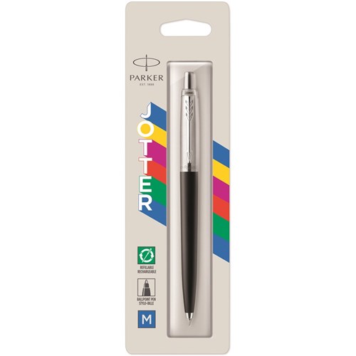 Parker Jotter Originals Ballpoint Pen Black Barrel Stainless Clip Refill Blue
