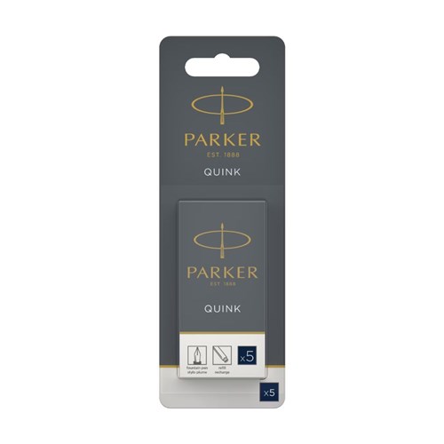 Parker Quink Fountain Pen Ink Refill Long Cartridge Blue Pack Of 5