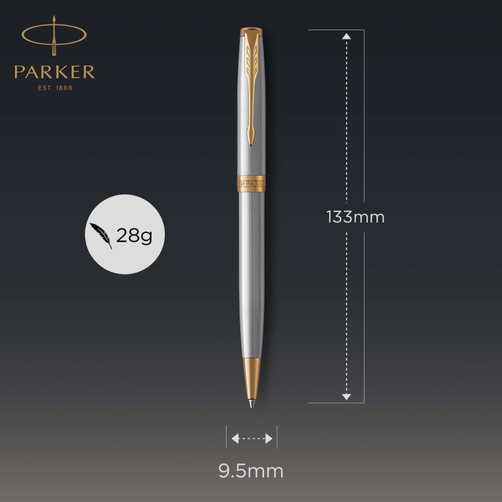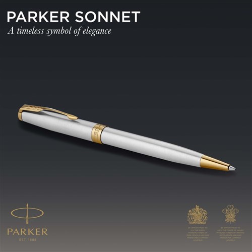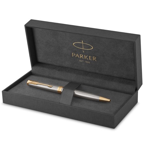 Parker Sonnet Ballpoint Pen Stainless Steel Gold Trim Black Refill