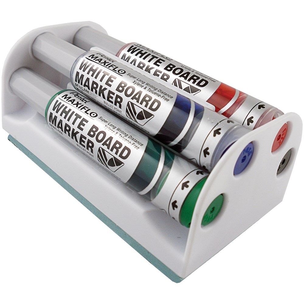 Pentel MWL5 Whiteboard Marker Maxiflo Magnetic Eraser Set Pack of 4 Assorted Colours