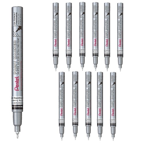 Pentel Paint Marker Extra Fine Point 1mm Silver Box Of 12