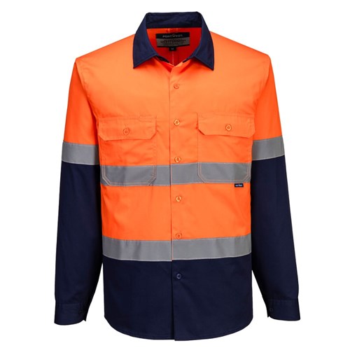 Portwest Industrial Hi-Vis Lightweight Contrast Shirt Long Sleeve 4XL Orange/Navy