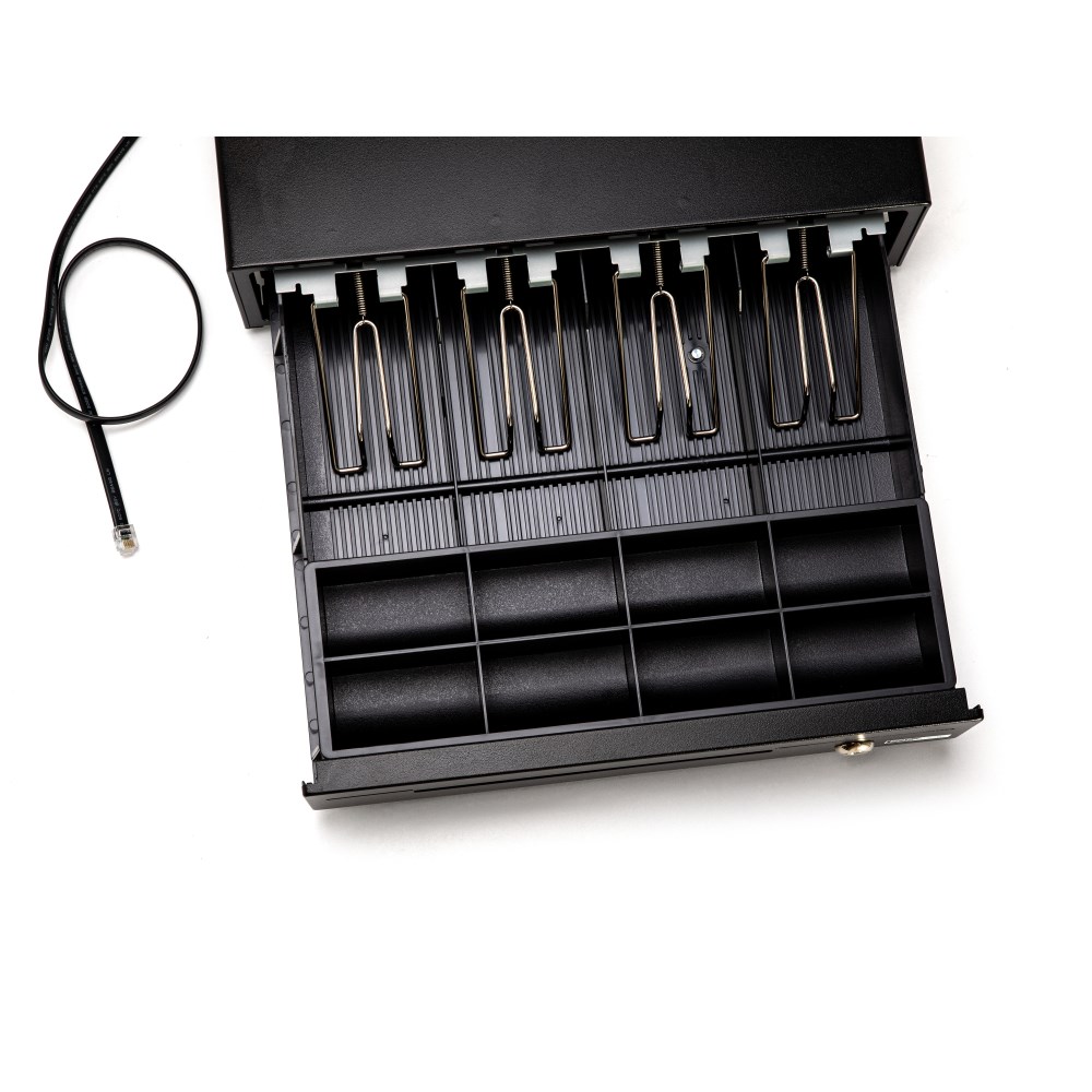 The cash drawer comes with a 1 metre cable to connect your receipt printer.