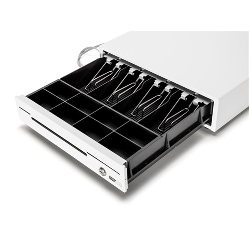 There are 4 note holders, 8 coin trays and a cheque slot for organising currency.