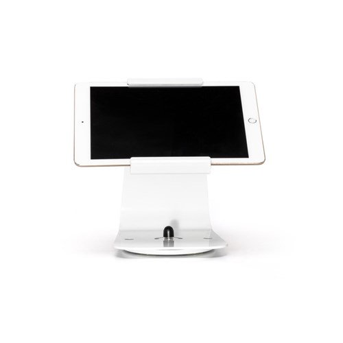 The 180 degree swivel base allows you to rotate it without needing to lift or remove the tablet from the stand.