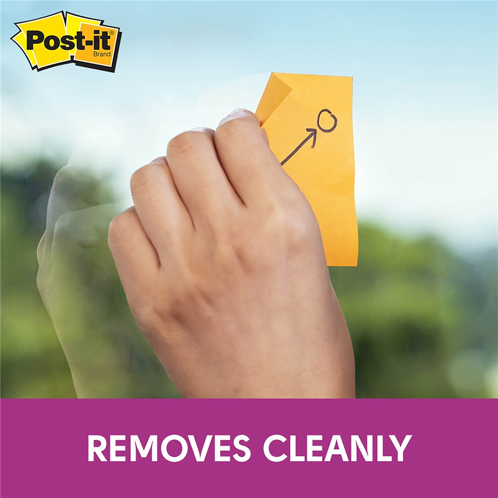 Super Sticky Post-it® adhesive ensures that notes stick practically anywhere such as computer monitors, filing cabinets & furniture and remain as easily removable as original Post-it® Notes.