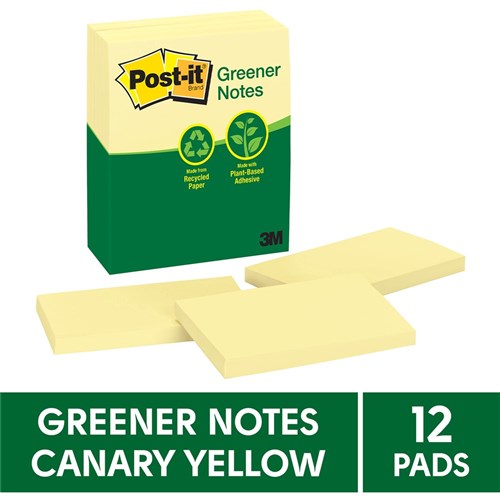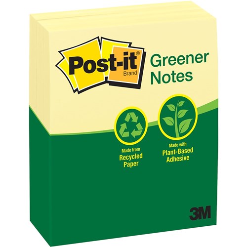 Post-it® Greener Notes in 76mm x 127mm size are made from 100% recycled paper and a plant-based adhesive - which means no new trees were used.