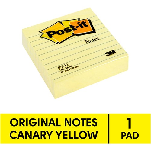Post-It 675-YL Notes Original 98x98mm Lined Yellow